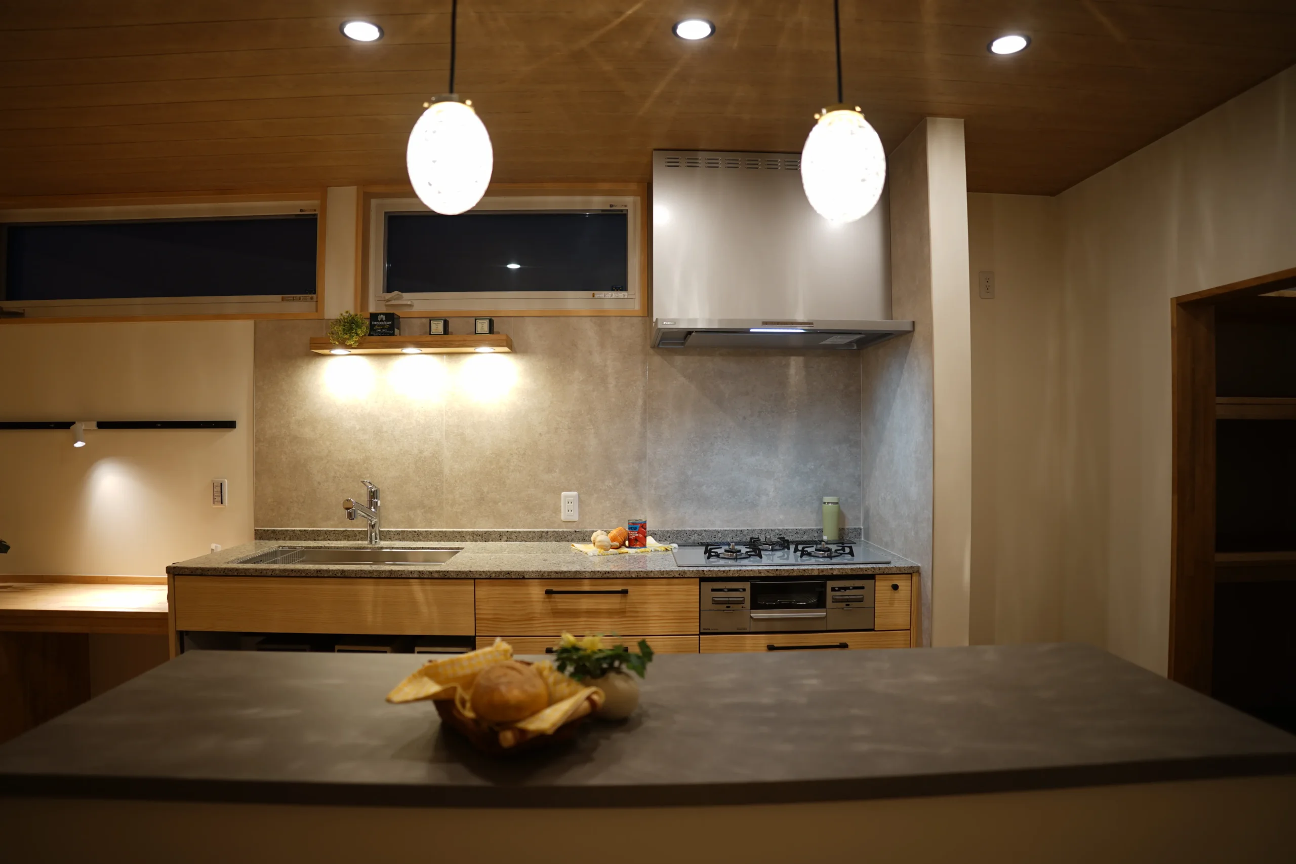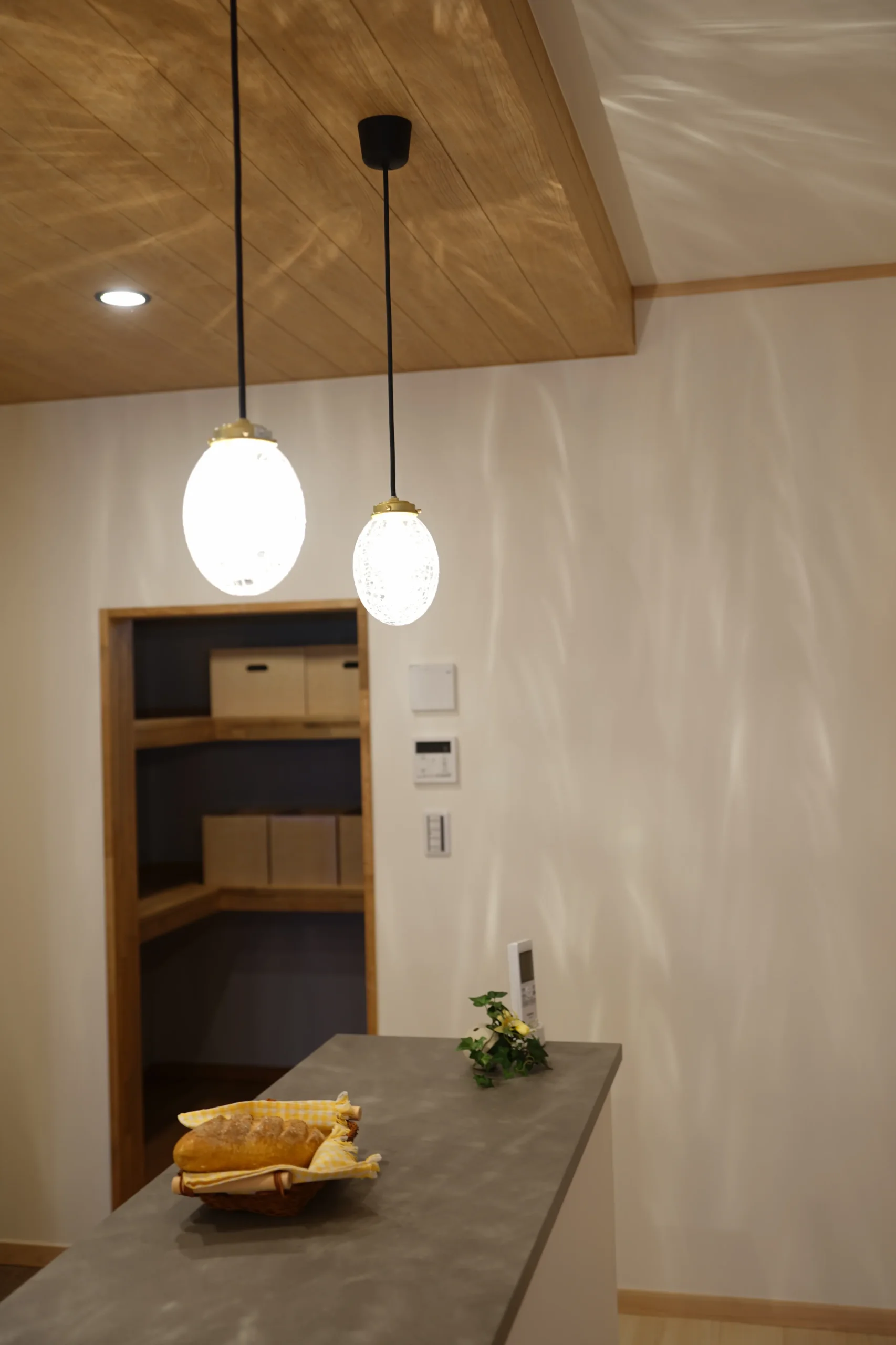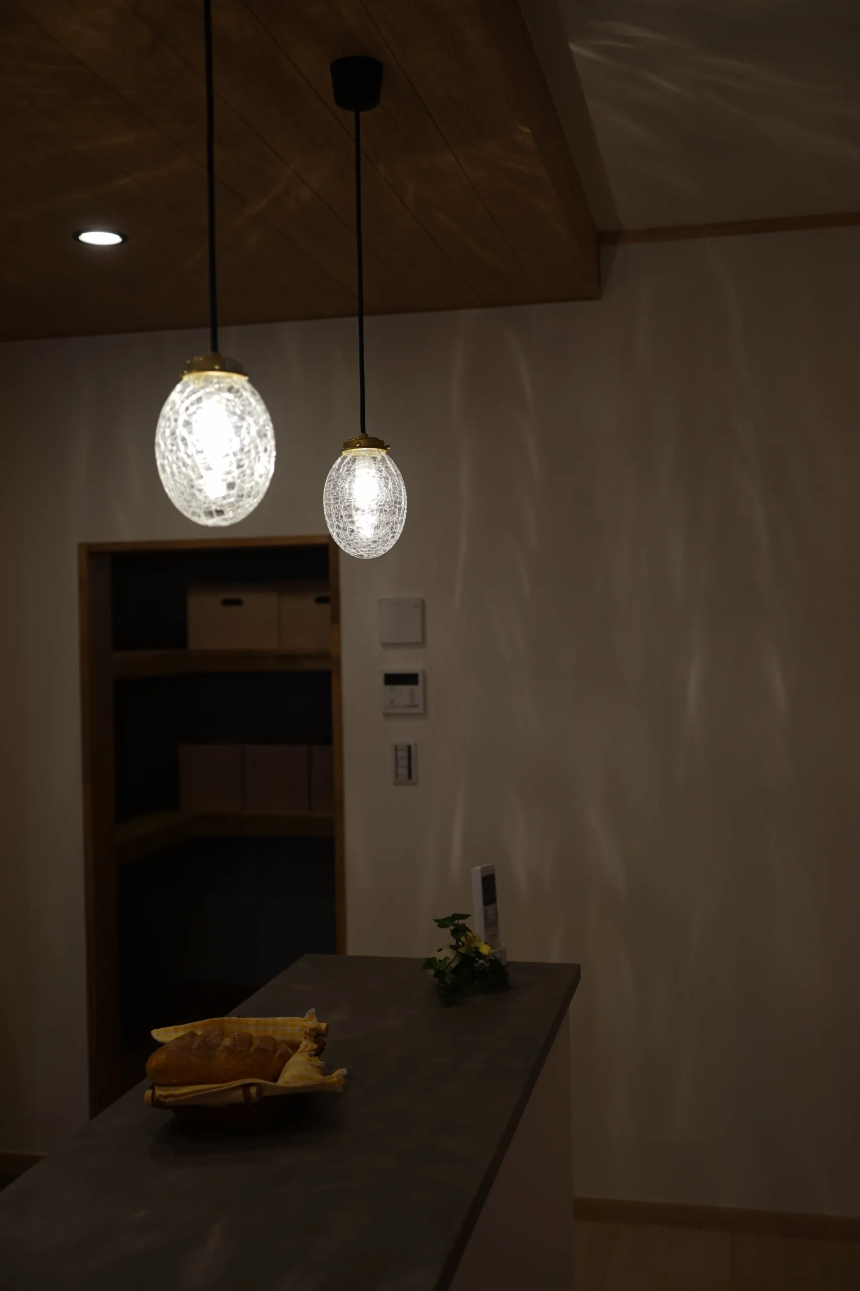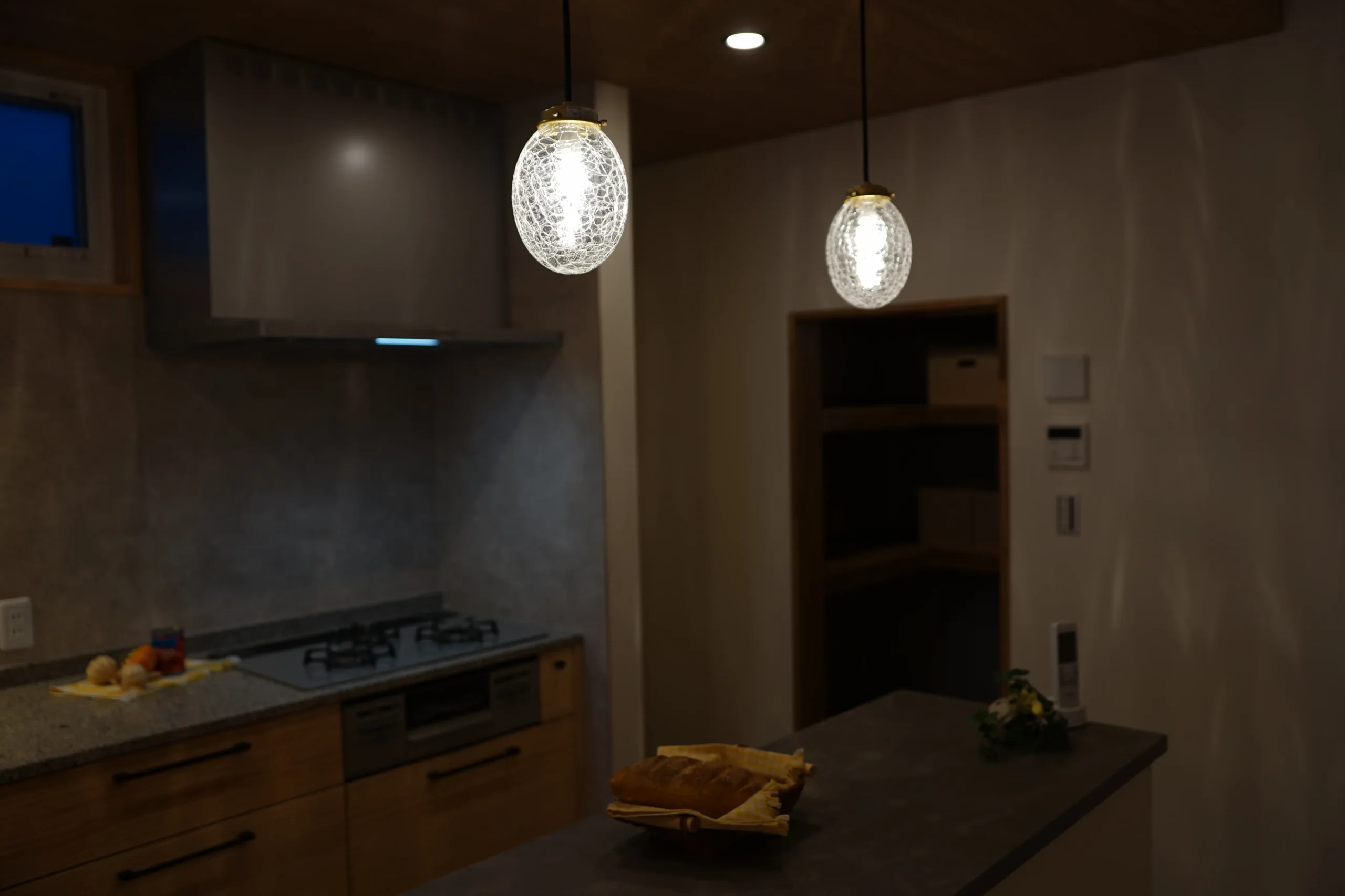 やわらかな灯りはキッチンカウンターに心地よい光をもたらし、空間をあたたかく包み込んでくれます。