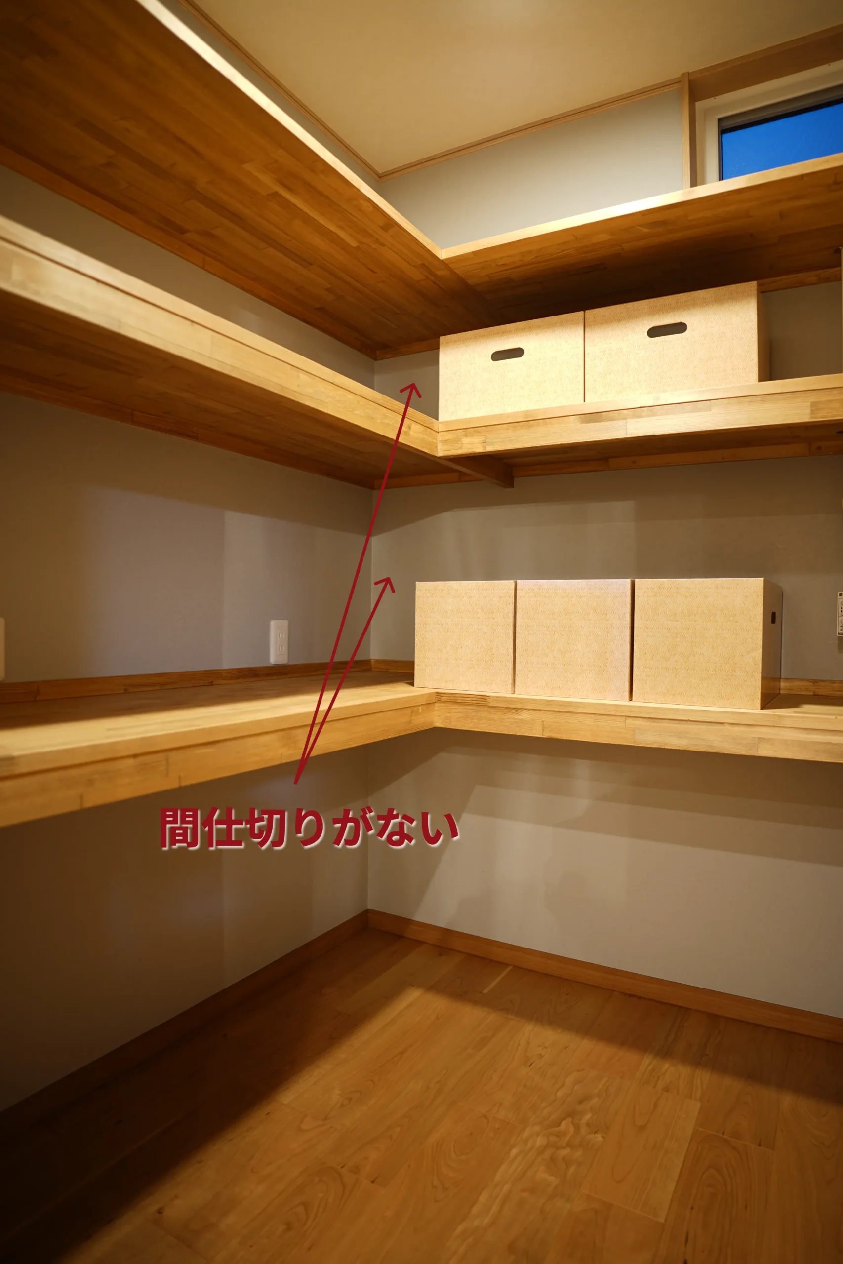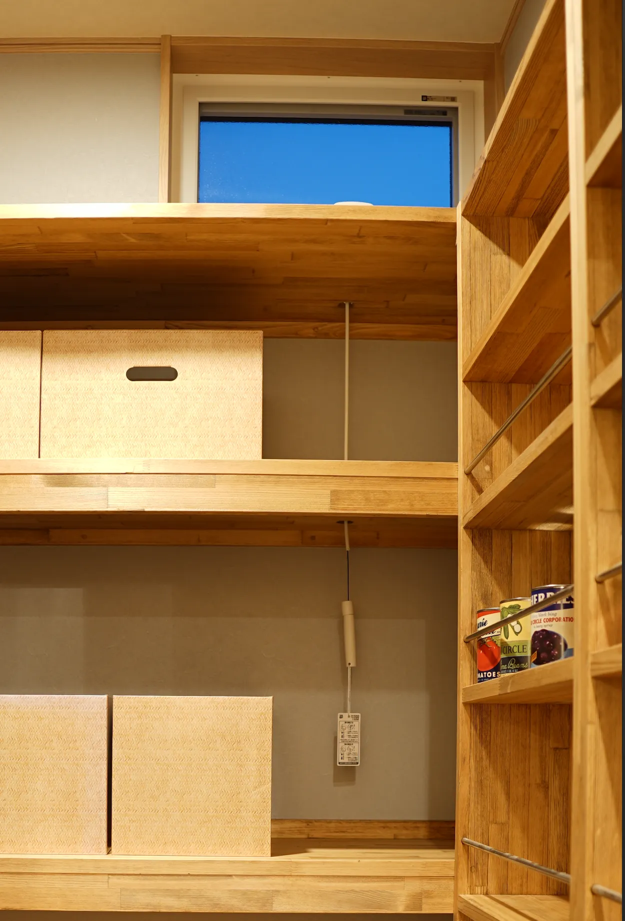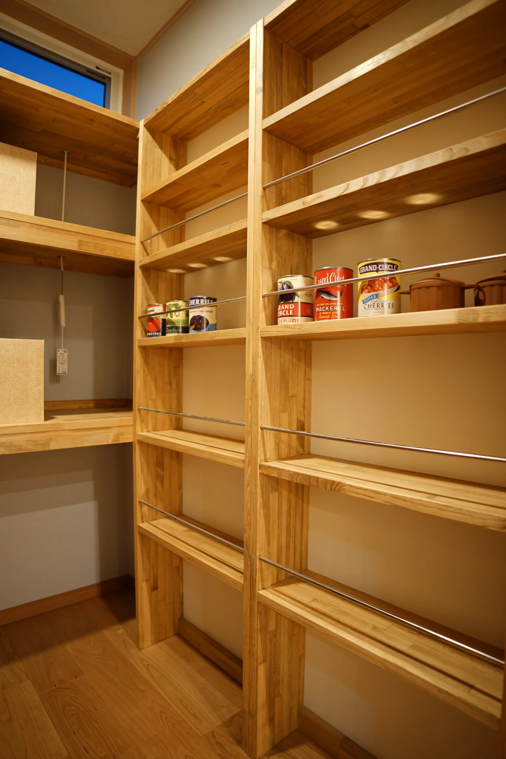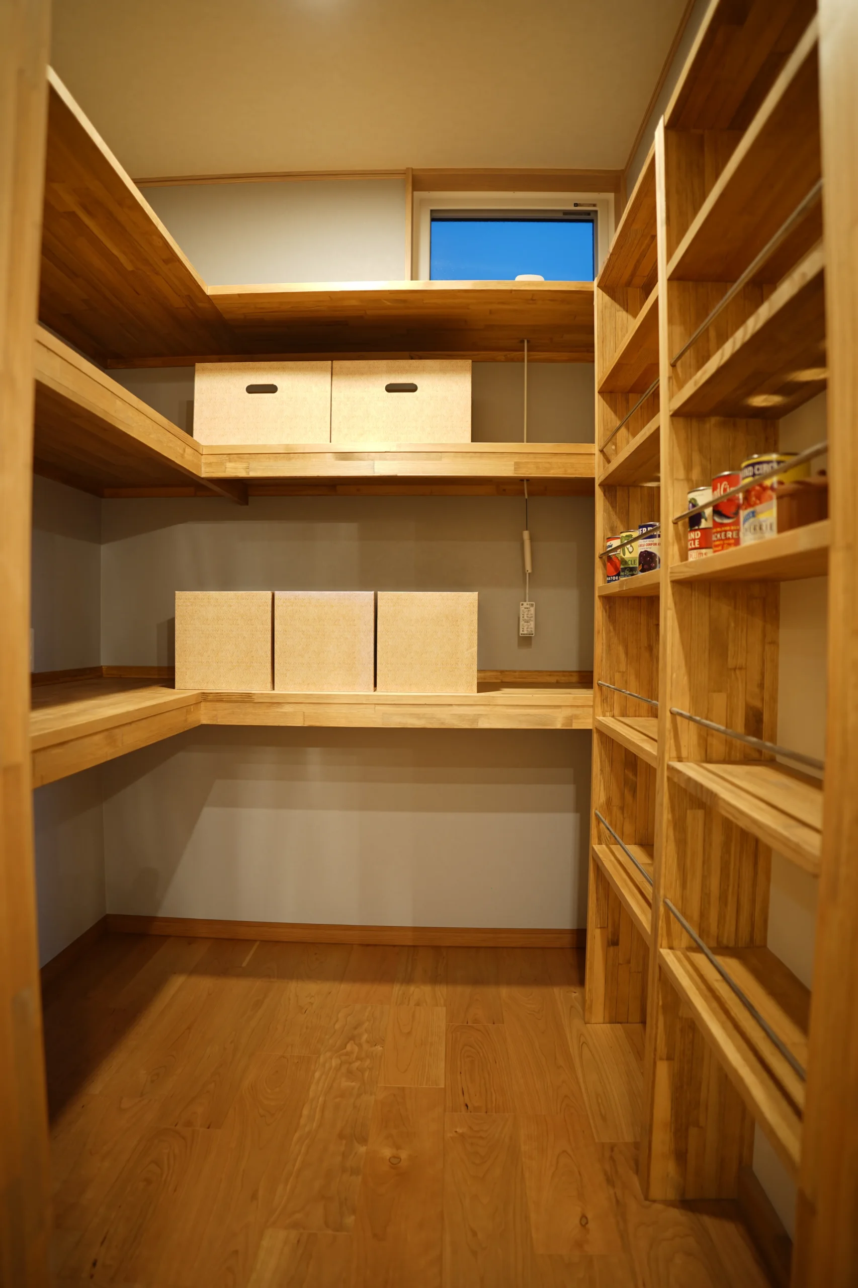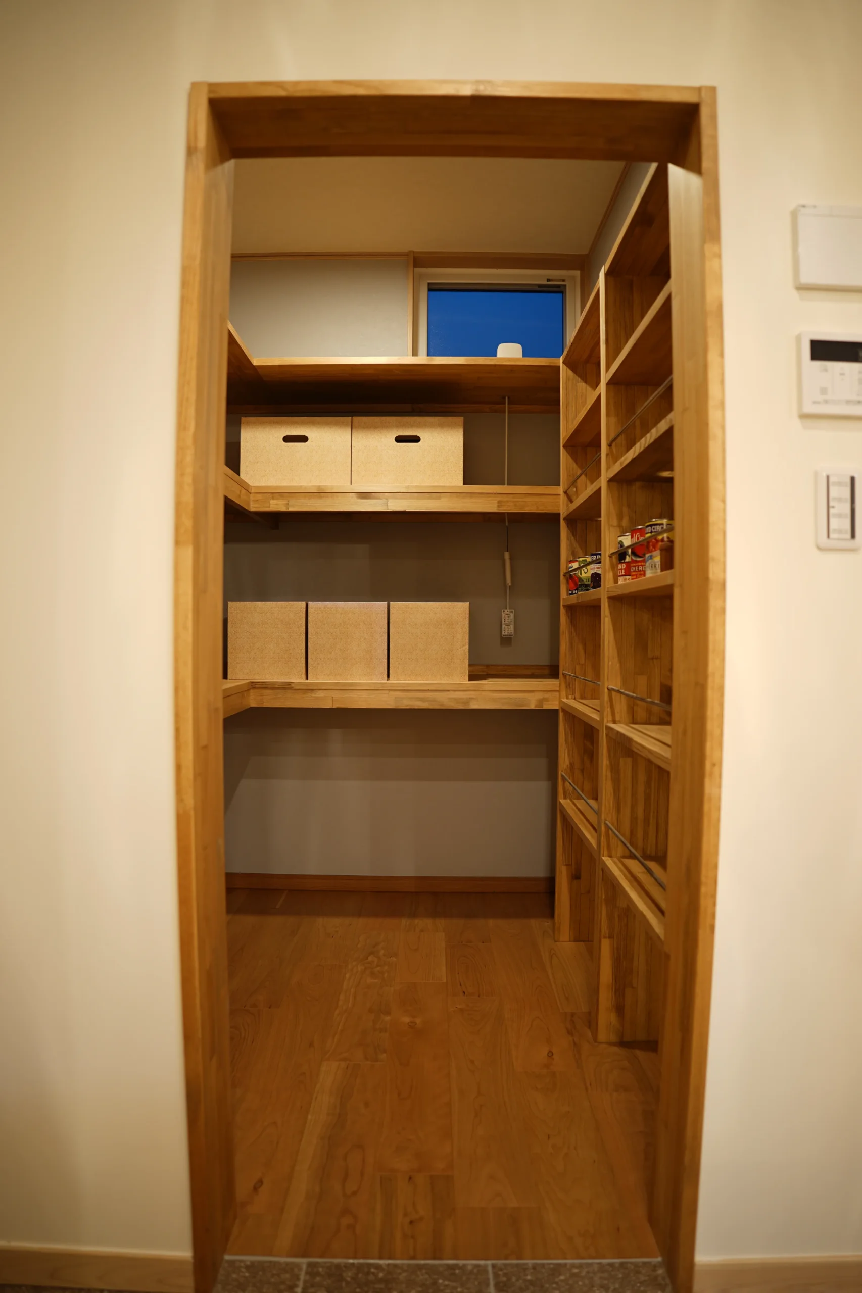 キッチンのすぐ横には、収納が充実したパントリーを設けました。